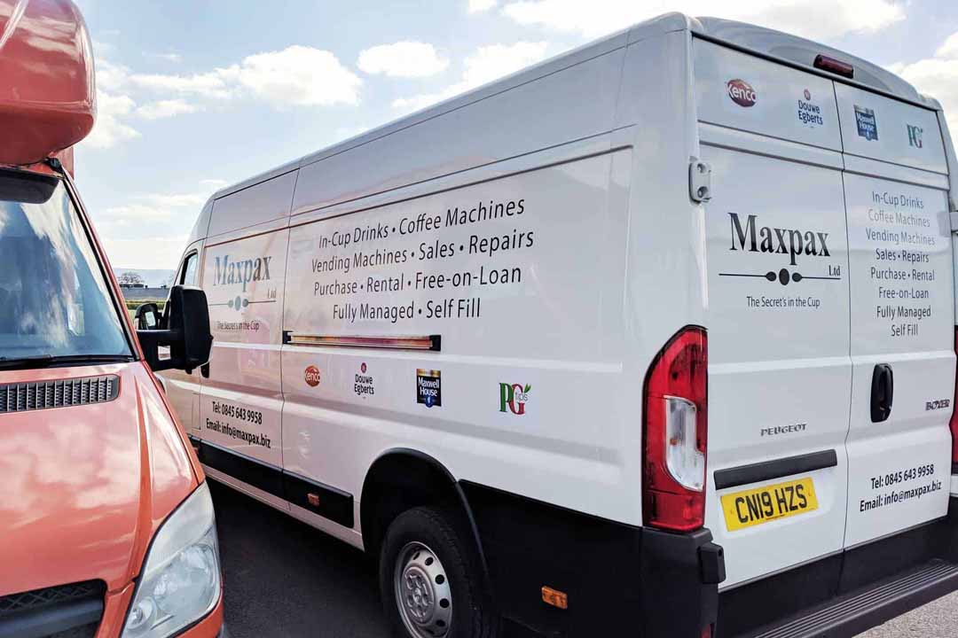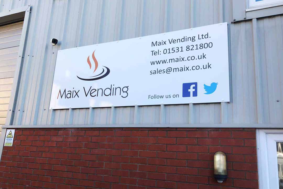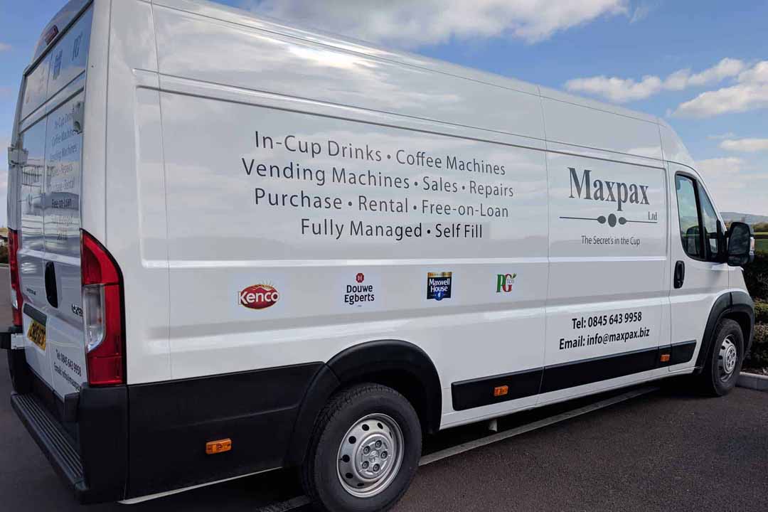 Over the last few years, Newent-based company Maix Vending Ltd have been working with us on their company branding. This has also included their sister company Maxpax Ltd, a creator and supplier of environmentally friendly in-cup hot drinks. Our work has entailed applying their relatively simple but effective company branding across a wide range of media, from the building signs to their exhibition stand, the coffee vending machines and a number of delivery vehicles.