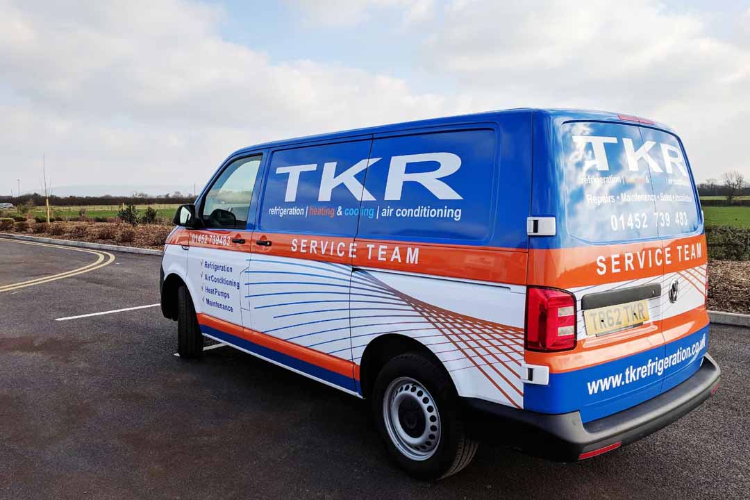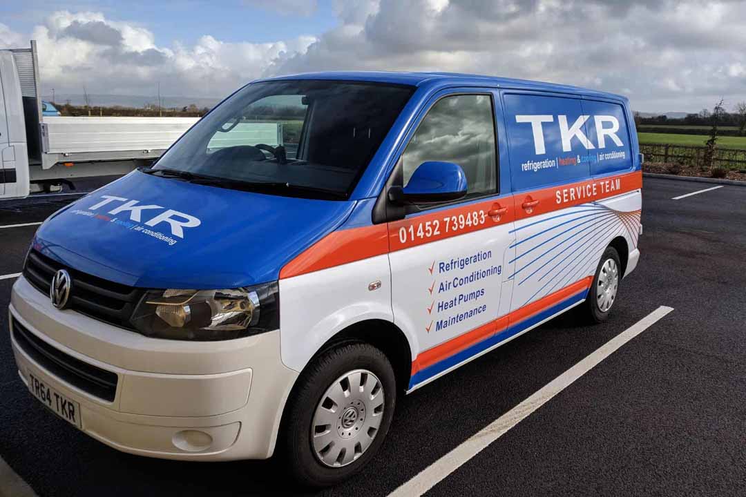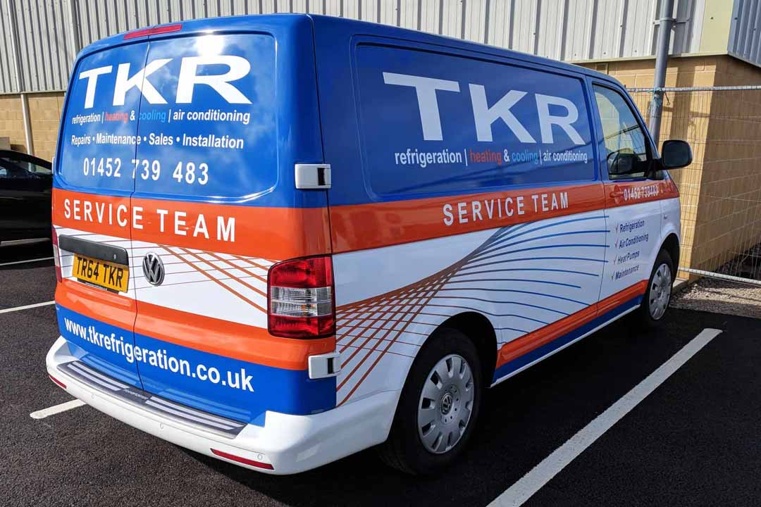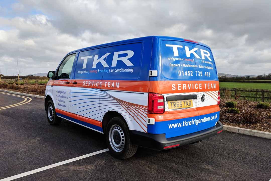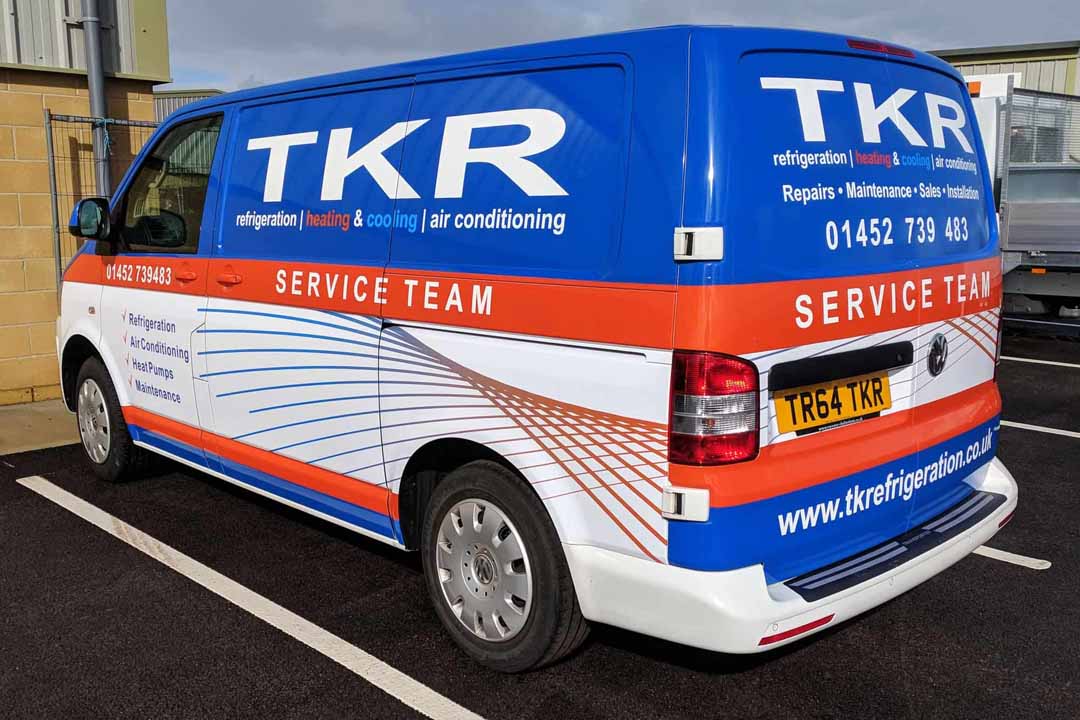 After buying a new environmentally-friendly heat source pump heating/cooling system from local company TK Refrigeration late 2017, they talked to us about creating an eye-catching wrap design for their fleet of vans: three new Volkswagen Transporter T6 vans; an older T5.1 Transporter and a new Ford Transit Custom. The original design ideas were created by TKR which we then used to design for the different van shapes.