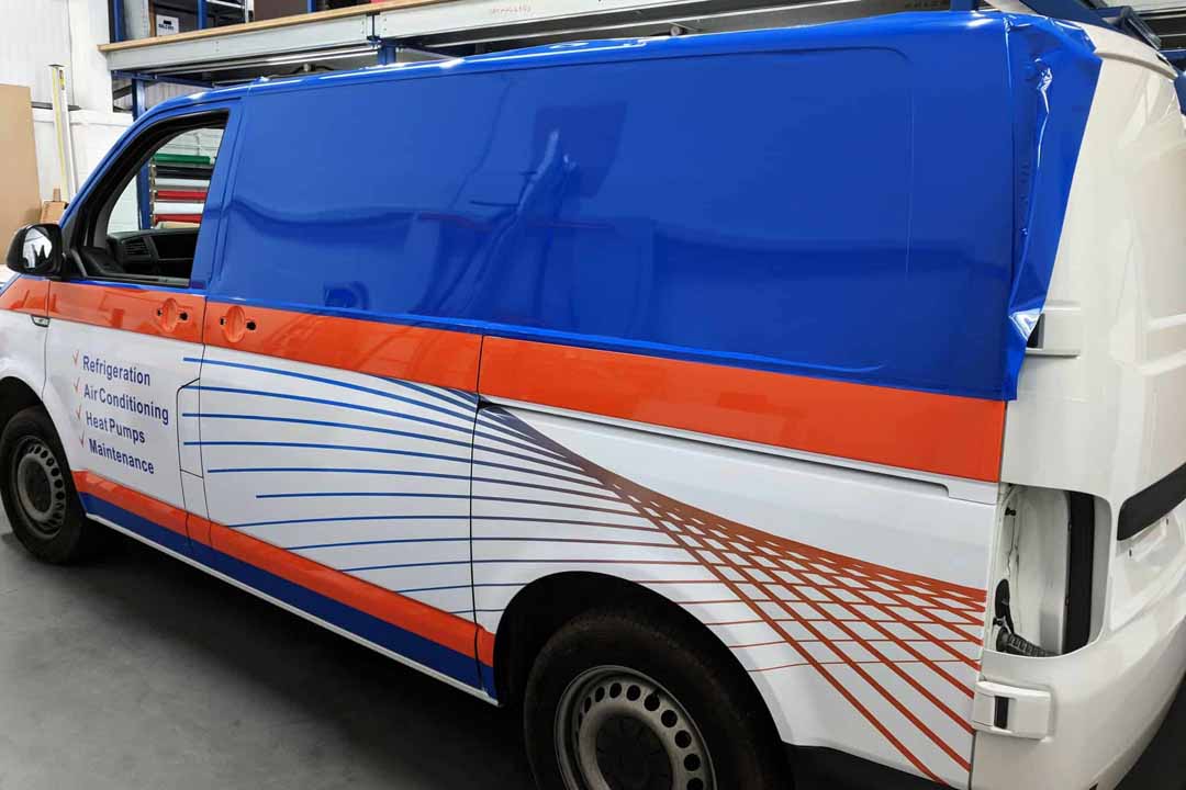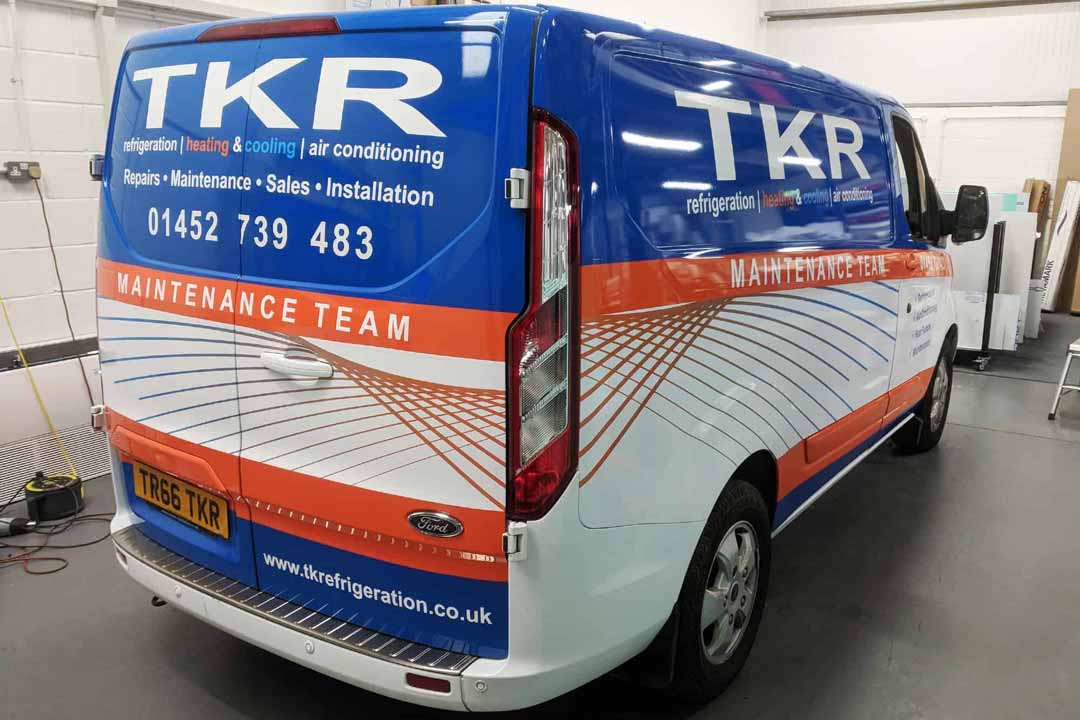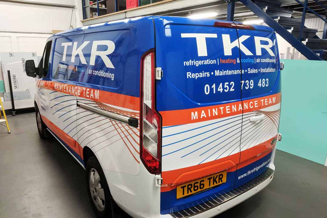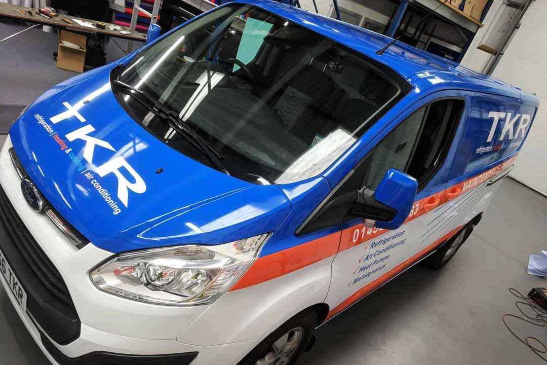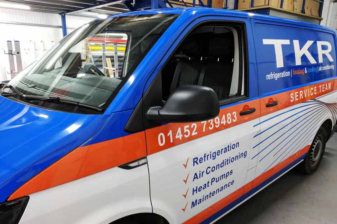 After buying a new environmentally-friendly heat source pump heating/cooling system from local company TK Refrigeration late 2017, they talked to us about creating an eye-catching wrap design for their fleet of vans: three new Volkswagen Transporter T6 vans; an older T5.1 Transporter and a new Ford Transit Custom. The original design ideas were created by TKR which we then used to design for the different van shapes.
