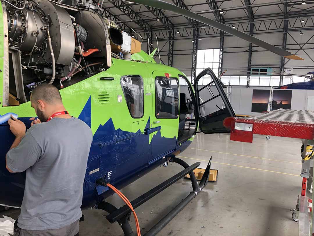 The graphics required to keep helicopters in an operational condition include cut vinyl graphics for registration numbers and safety decals through printed and cut vinyl graphics to create eye catching designs and in some case can be combined with reflective materials to increase visibility in low light conditions.