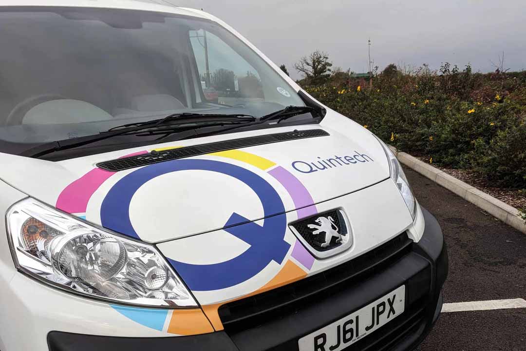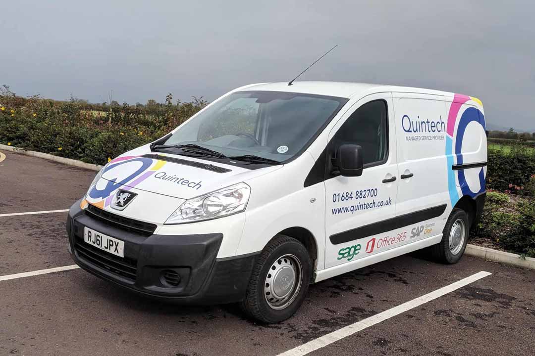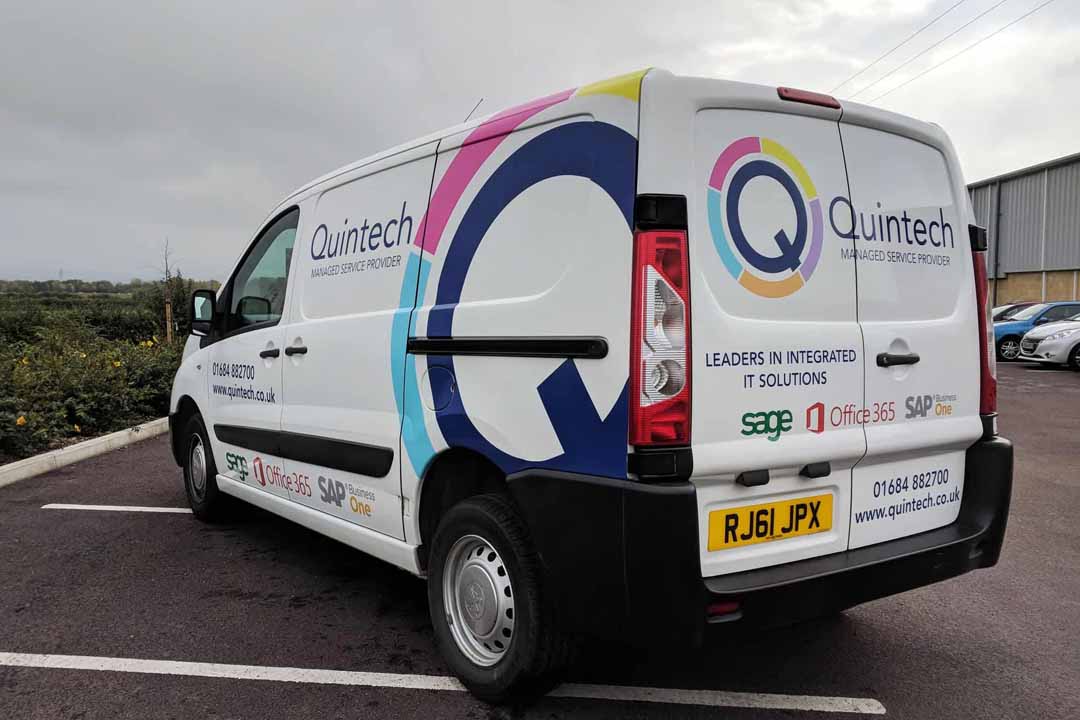 We were recently asked by Quintech, a local IT solutions provider, to work on their Peugeot 207 and Expert vans using a mix of simple printed logos and partial wraps. Quintech needed to re-brand the vans after changing their main business logo.